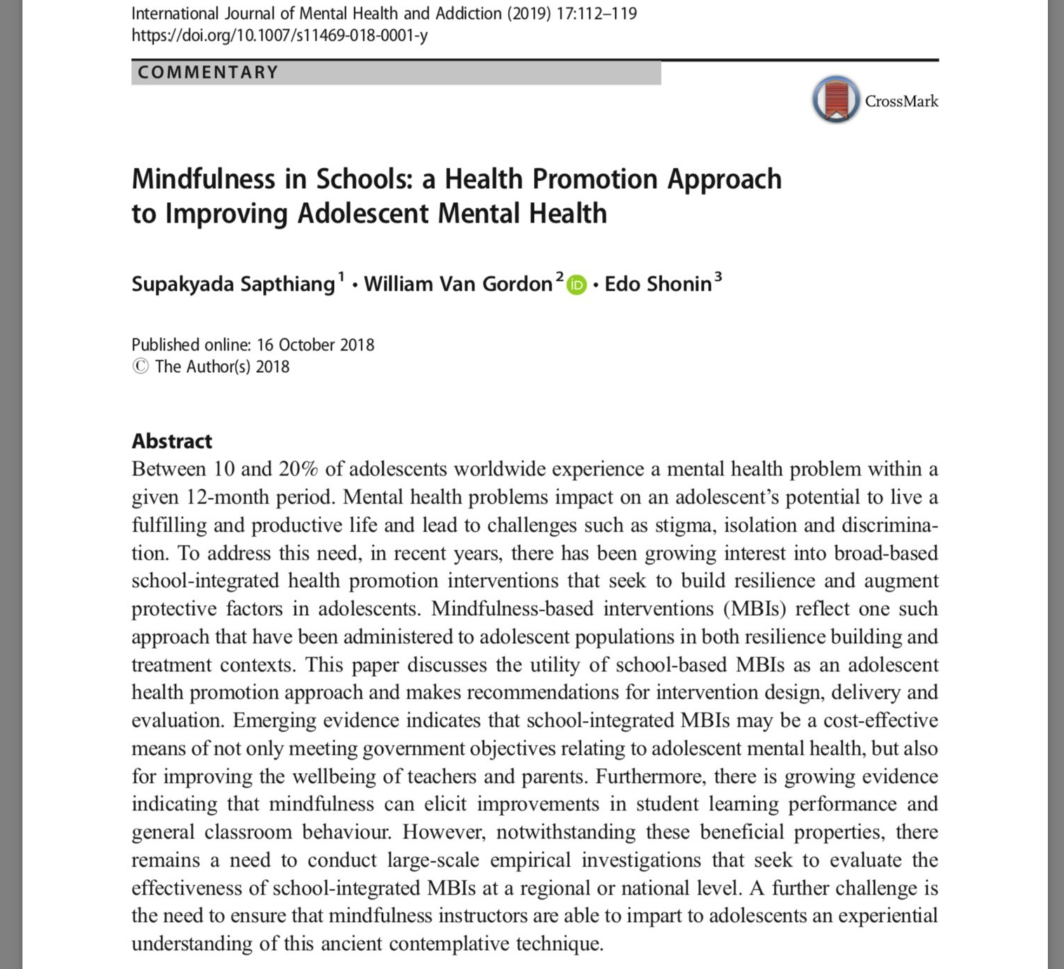 Just published in full: In this paper we discuss whether the #mentalhealth of adolescents and #university #Students can be improved by the widescale integration of #Evidence-based #Mindfulness approaches.