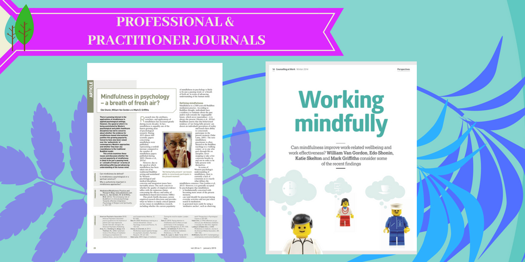 Van Gordon, W., Shonin, E., Skelton, K., & Griffiths, M. D. (2014). Working mindfully: Can mindfulness improve work-related wellbeing and work effectiveness? Counselling at Work (A Journal of the British Association for Counselling and Psychotherapy), Winter Issue, 14-19.